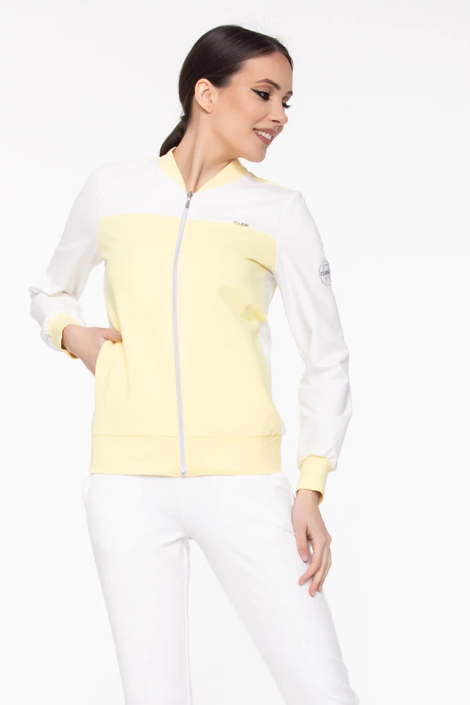 Állógalléros, elöl cipzáras, testhezálló szabadidőfelső.