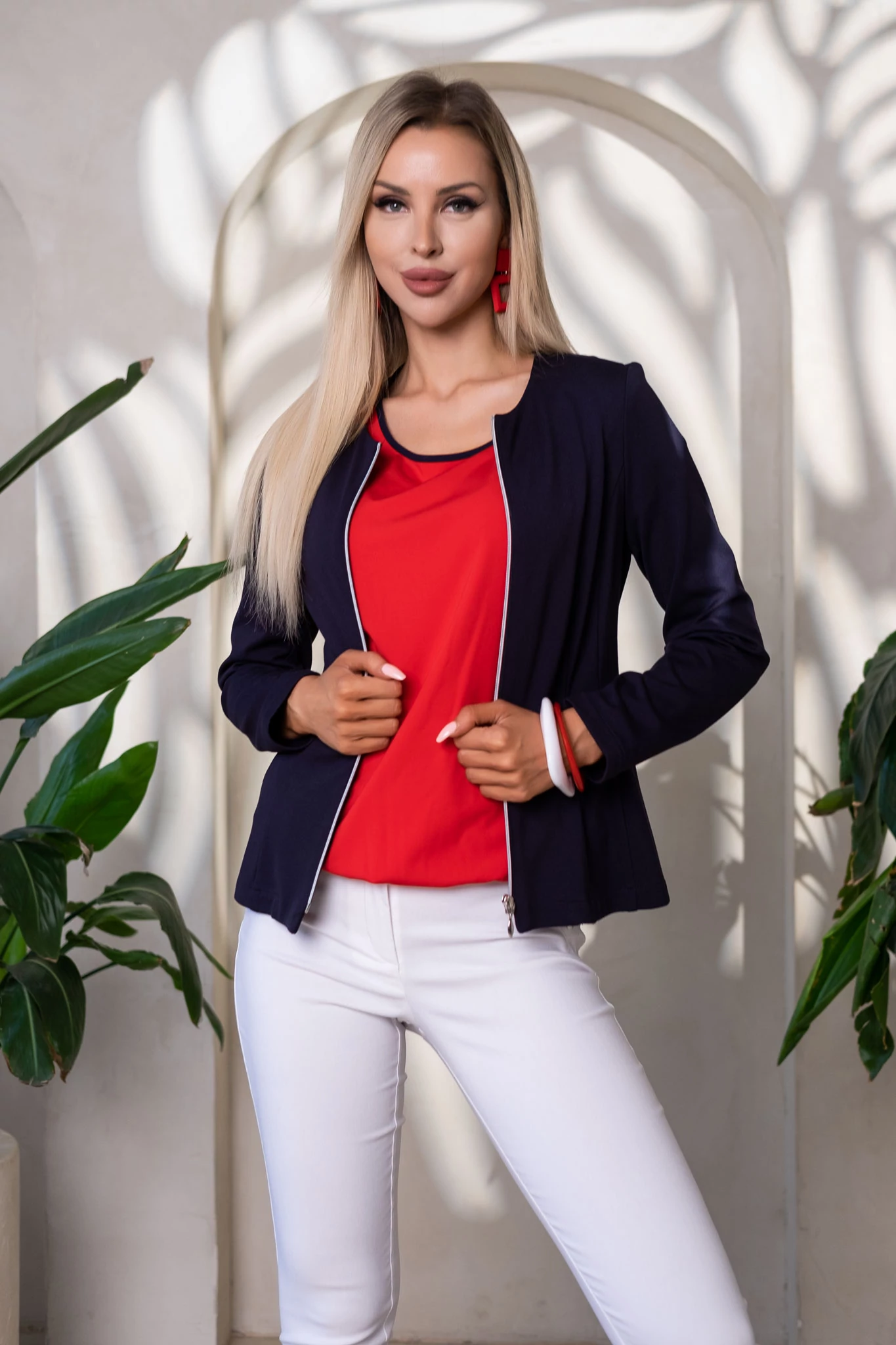Testhezálló fazonú, elején cippzárral záródó kabátka.