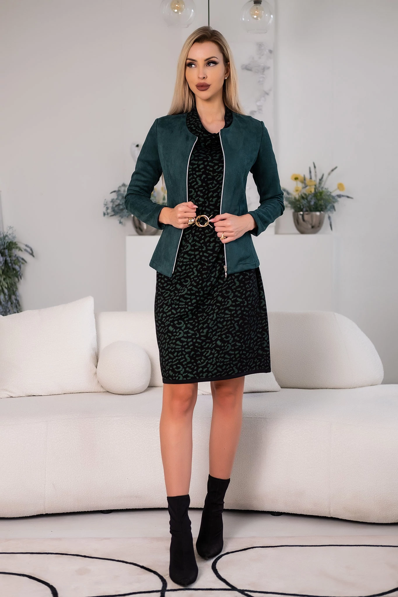 Lezser fazonú, bordás anyagú, nyakbaálló gallérú kabátka.