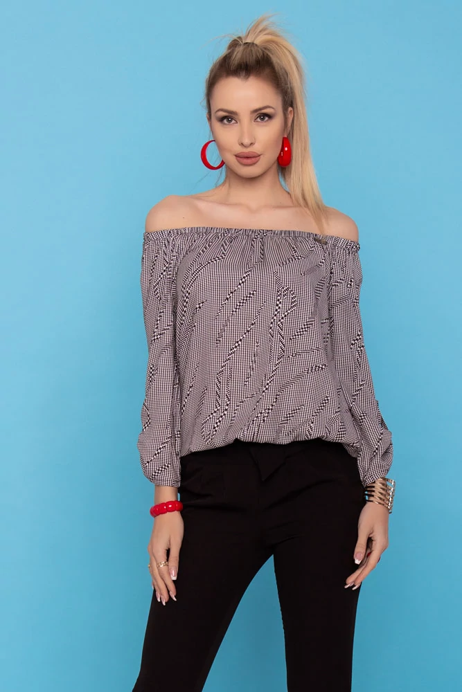 Trixi gumisnyakú blúz - fekete/fehér mintás